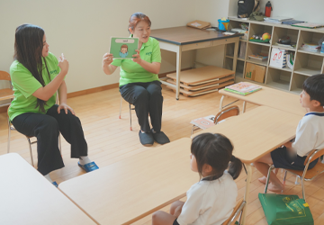 外国人と日本人の2名体制で安心のレッスンです。ゲームや歌、リズムを通してたくさんの英語に触れ、お友達と一緒に楽しみながら自然に英語を身につけることができます。アルファベットの読み書きも練習します。